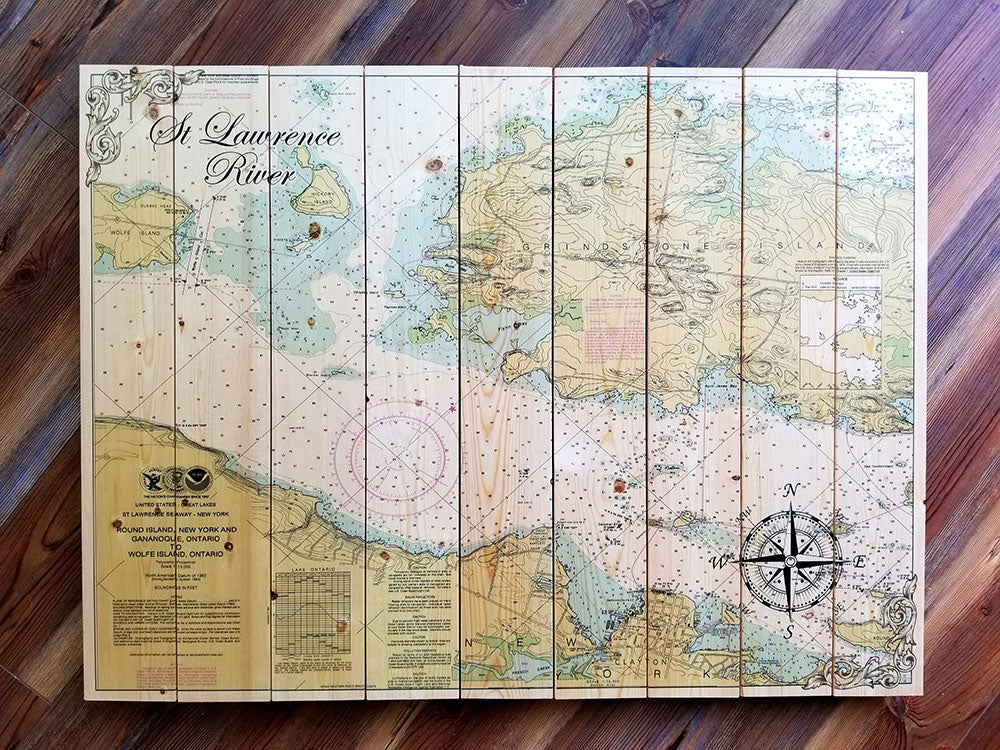 St Lawerance River, NY Statement Sized Pallet Map – MapMom